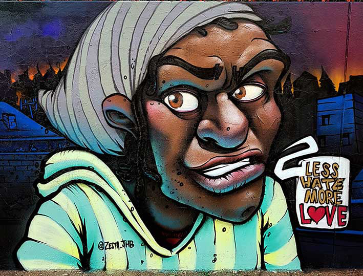 "Less Hate, More Love" Street art/ graffiti piece I painted in Johannesburg.